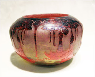 J’ai commencé à vous parler de cardamines, et voudrais dans la foulée vous entrainer dans l’univers de Schneider, à l’époque de l’Art Nouveau où la Nature servait d’inspiration aux artistes. La Nature c’était la botanique, comme les rhododendrons et mes chers Datura. Mais aussi les oiseaux ; les scarabées ou les chats. Et les poissons dans leur aquarium de bulles.